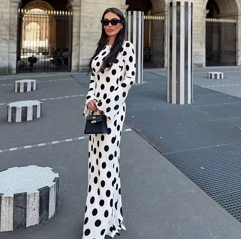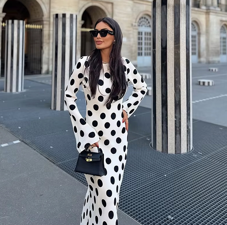 I Line Long Sleeve Summer Dress 2025 in White Polka Dot Elegant
