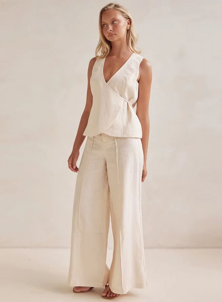 Sommer-Braut-Outfit – Ärmelloser Zweiteiler für das Standesamt mit Wickelbluse