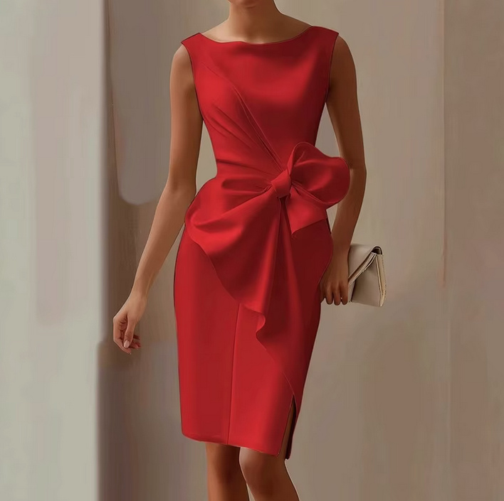 Knee-length midi dress sleeveless elegant for wedding guests in red