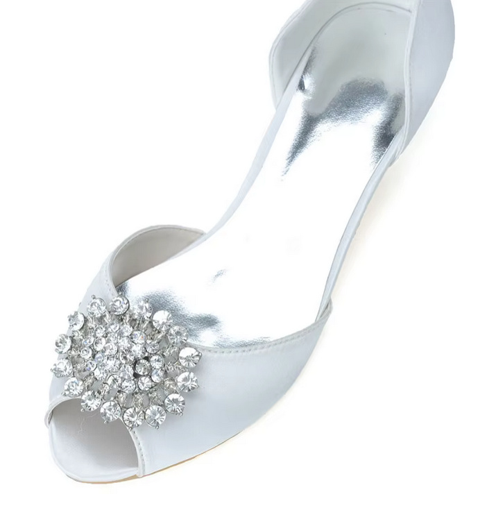 Low Heels Bridal Shoes Dala Peep Toe Wedding Shoes with Rhinestones