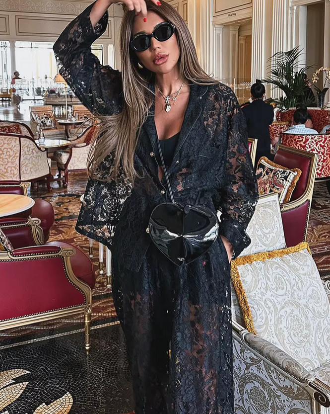 Elegant two-piece set for women 2025 Sexy lace outfit in black