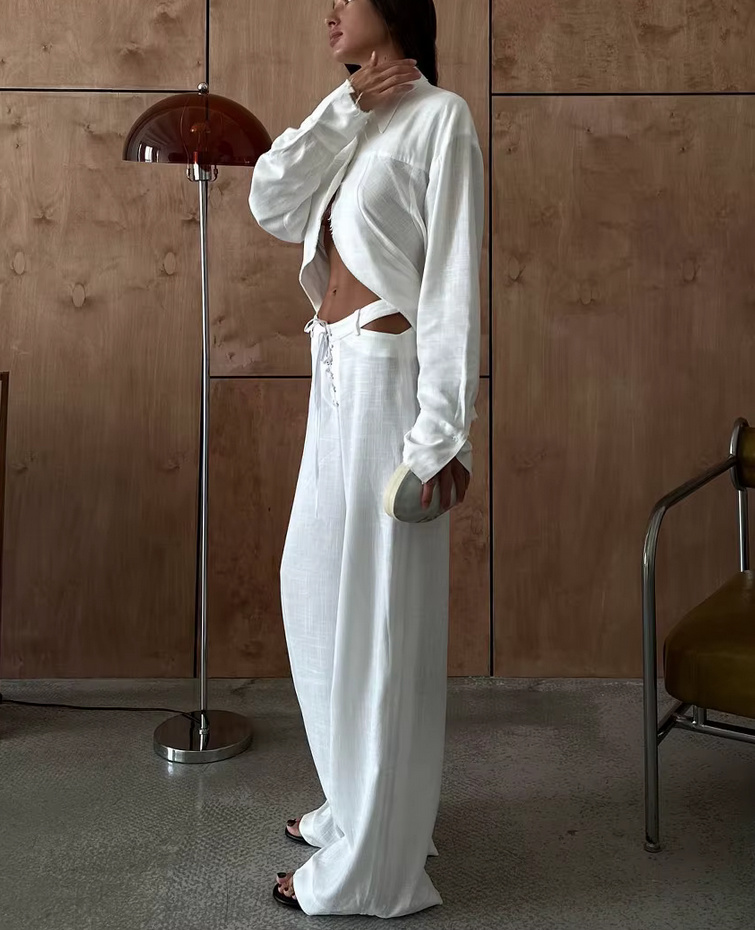 Sexy Leinen Braut-Outfit Standesamt Zweiteiler für die Braut