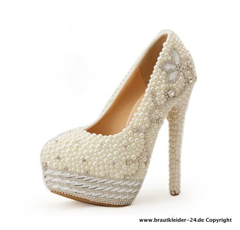 Perle Strass High Heels Brautschuhe in Elfenbein 14 cm