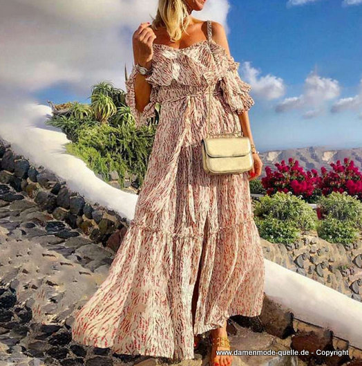 Schulterfreies Chiffon Maxi Sommerkleid