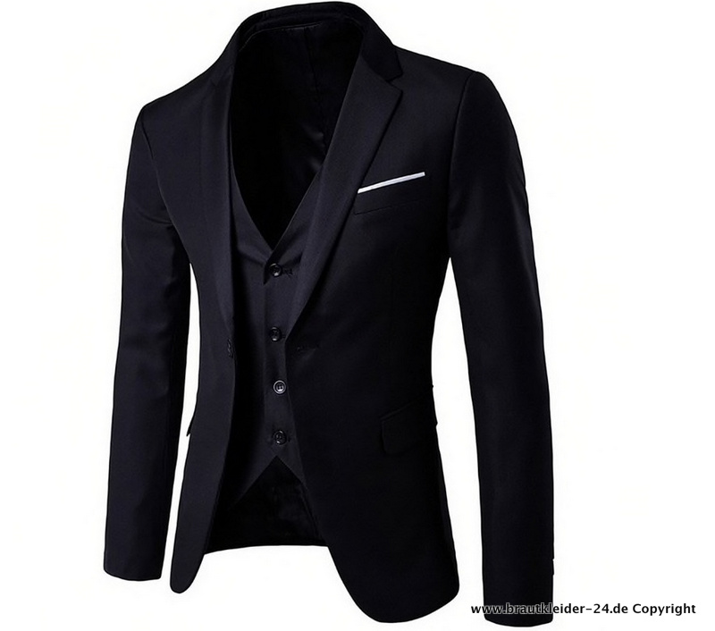 Standesamt Herrenanzug für den Bräutigam 3 Teilig Blazer Weste Hose in Schwarz