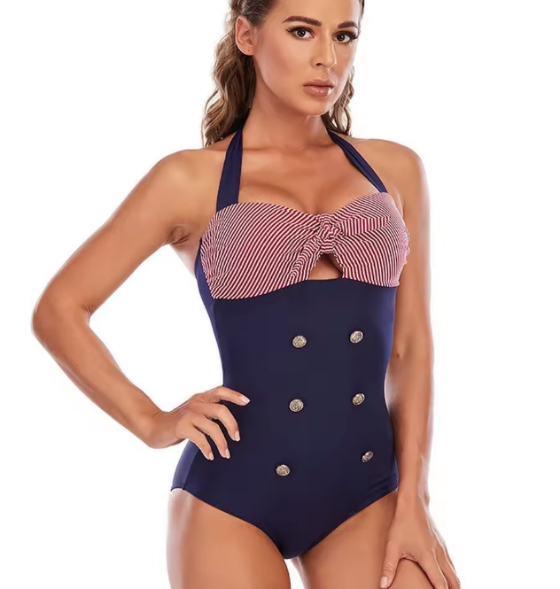 Pin Up Style Halterneck Swimsuit 2025 Sabeth Black Blue Red