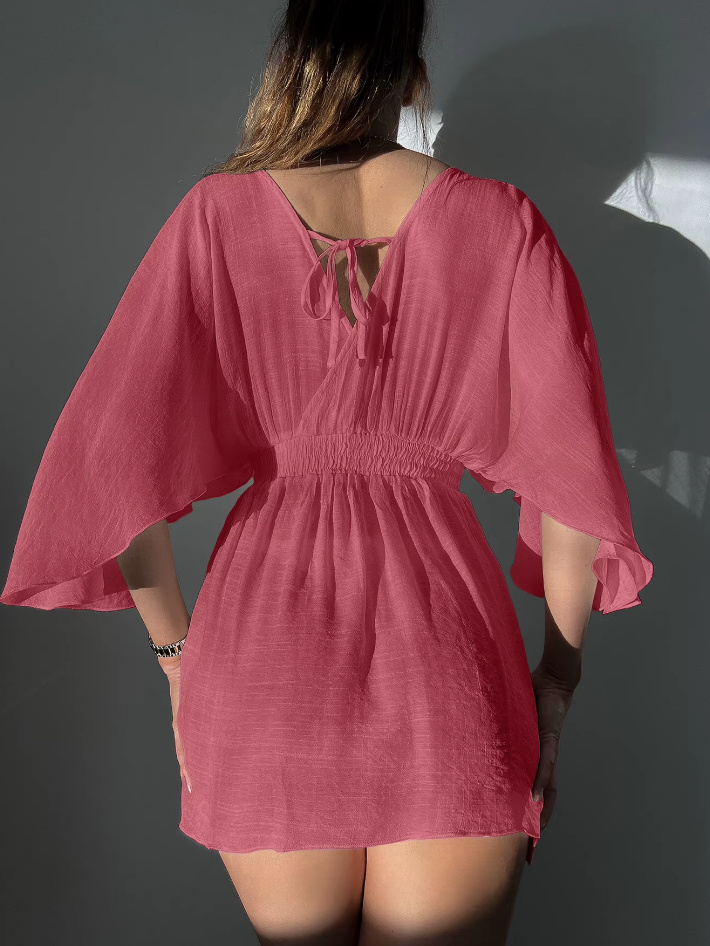 Sexy Mesh Strandkleid 2025 Kurz mit V Ausschnitt in Rose