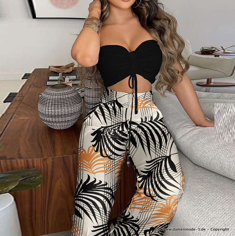 Sexy Sommer Print Outfit Zweiteiler Crop Top mit Hose im Set