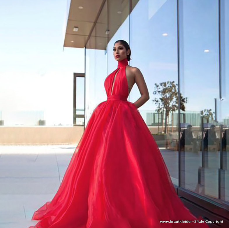 A Linie Neckholder Träger Brautkleid Hochzeitskleid in Rot