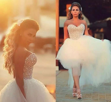 Bustie Tulle Mullet Wedding Dress Sexy with Pearls Embroidered
