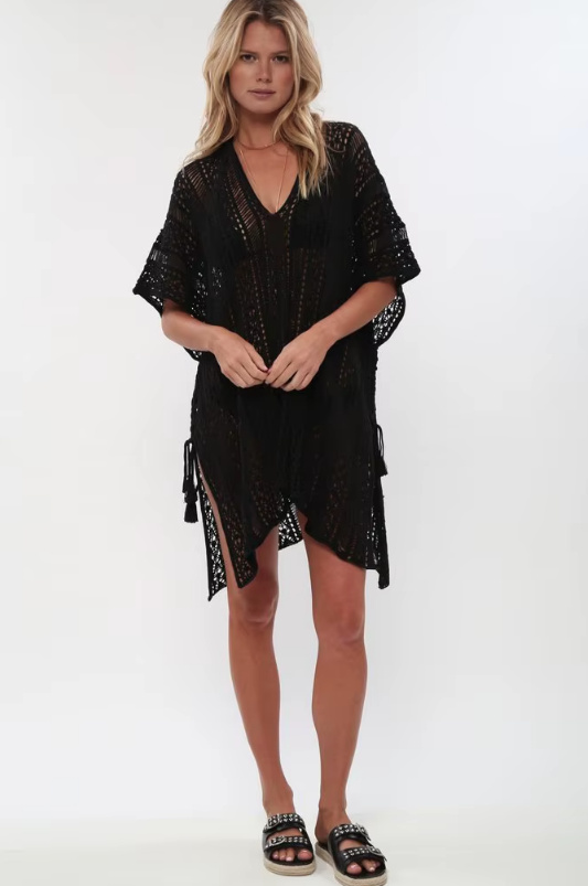 Short knitted beach dress 2025 cover up dress Sunnhild Black