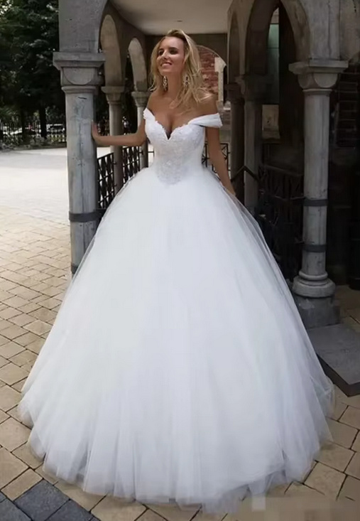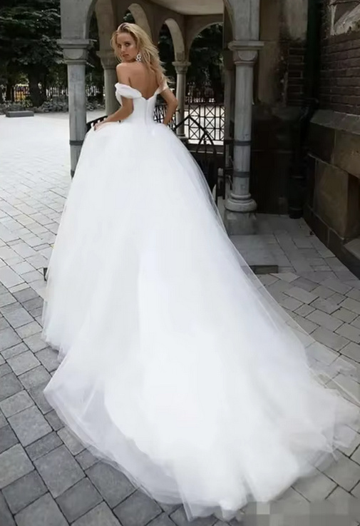 Off-the-shoulder A-line wedding dress Ilisabat with tulle and lace