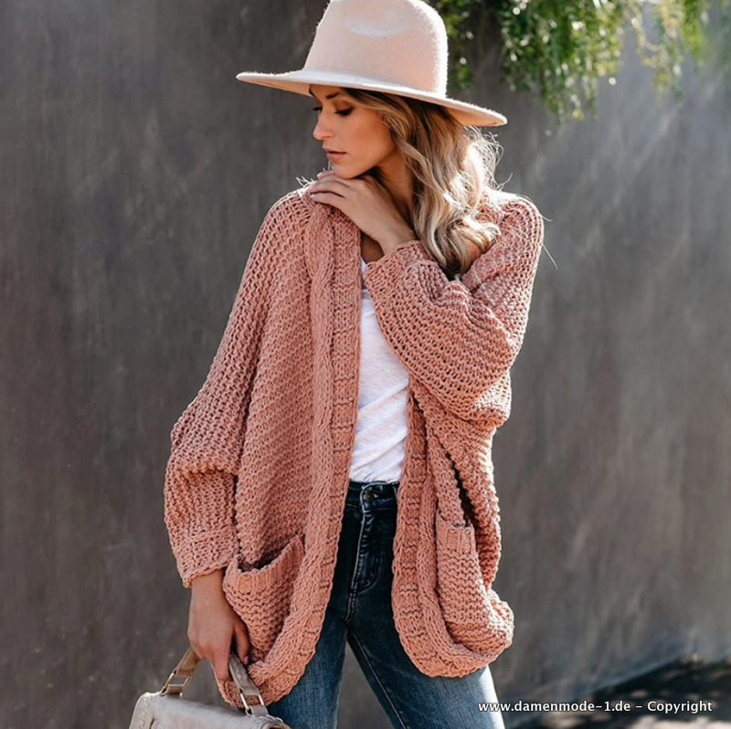 Herbst Winter Damen Cardigan Strickjacke in Aprikose Elegant