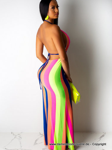 Rückenfreies Strand Maxi-Kleid Gestreift