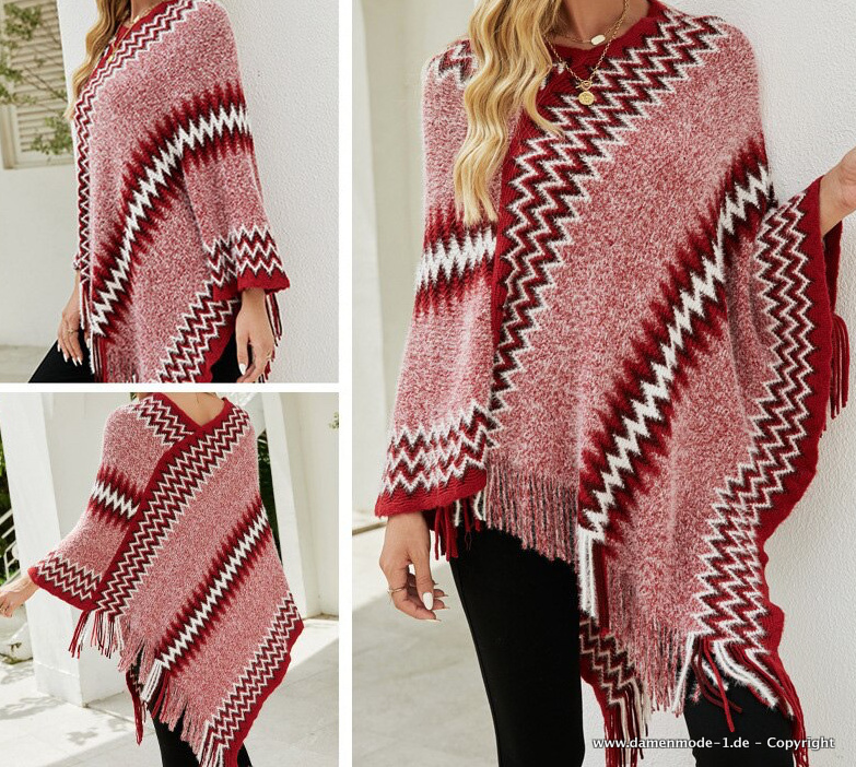 Damen Poncho Strick Pullover in Rot