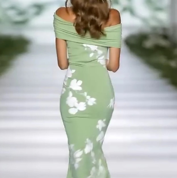 Elegantes Meerjungfrau Sommerkleid in Hellgrün mit Blumenmuster Grösse: S – XL