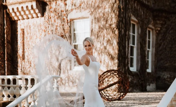 Clean Chic Fit and Flare Wedding Dress Inka Sleeveless with Train