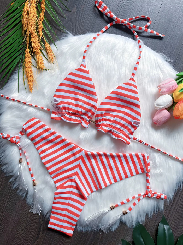 Halterneck Bikini 2025 Rot Weiß Gestreift