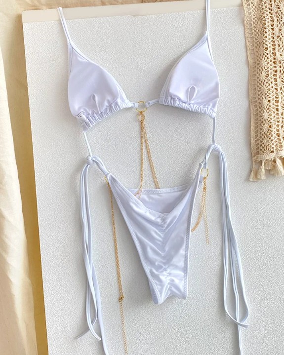 Sexy Halterneck Bikini 2025 Susanna White with Chain