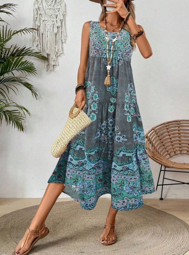 A-Linie Maxi Sommerkleid 2025 Eireen mit Vintage Muster