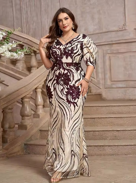 Elegant I-line dress Malou for wedding guests with floral pattern