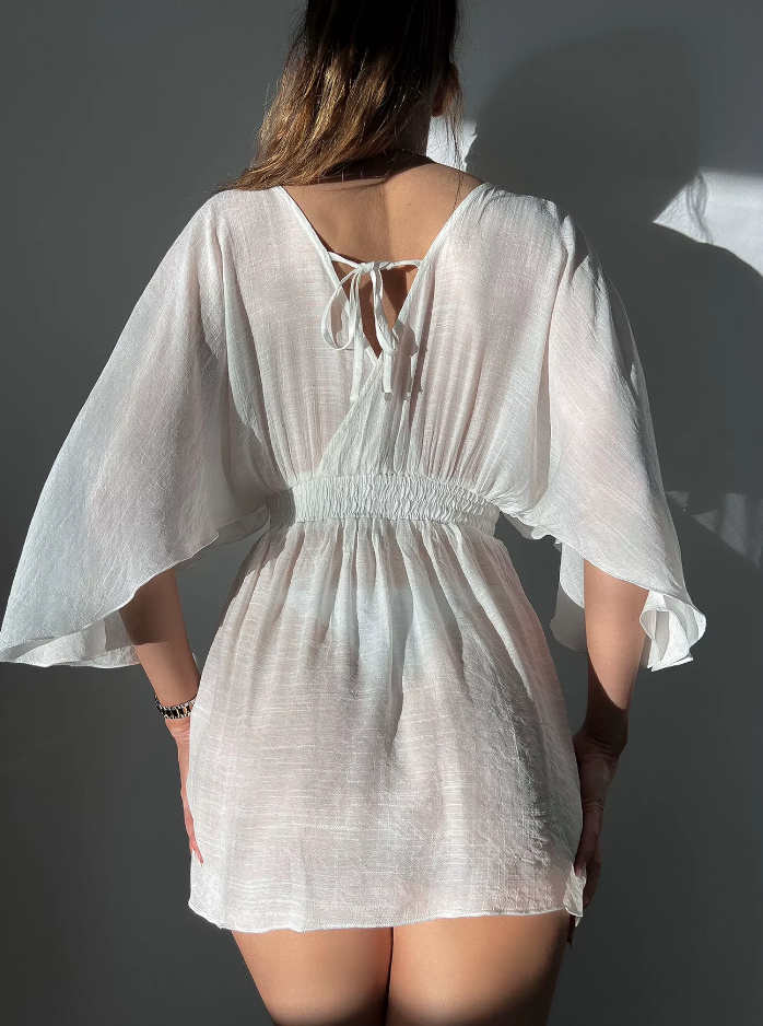 Sexy Mesh Beach Dress 2025 Short with V Neck in White