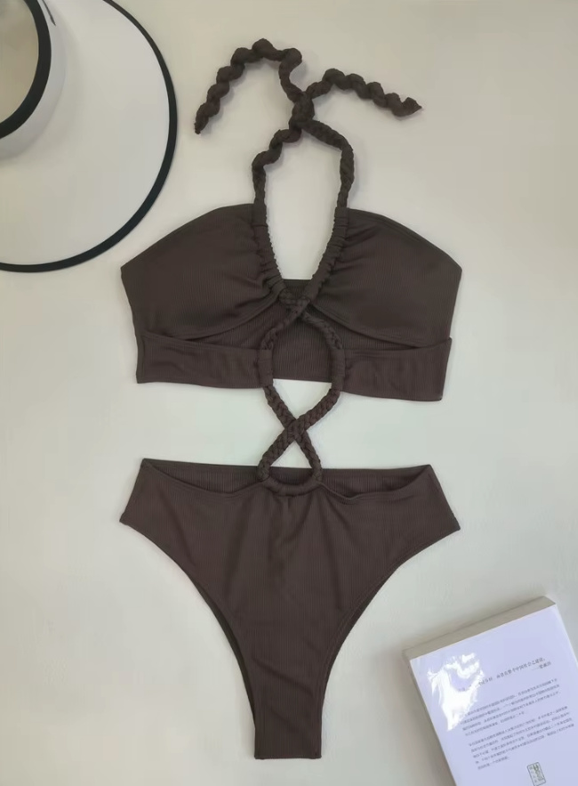 Sexy Halter Cut Out Swimsuit 2025 in Brown