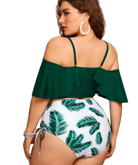 Damen Push Up Triangle Plussize Bikini 2025 Grün Weiß