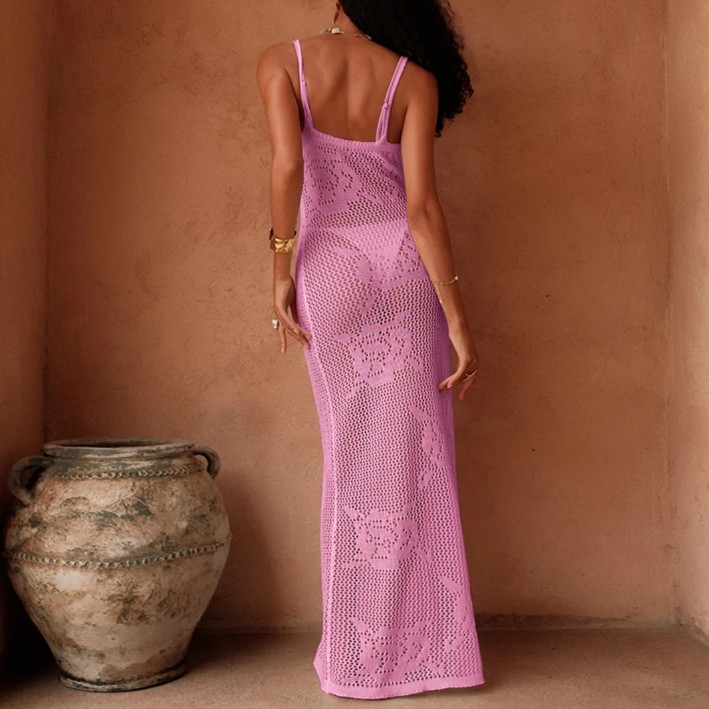 Spaghetti strap beach dress 2025 Olivia knitted in pink