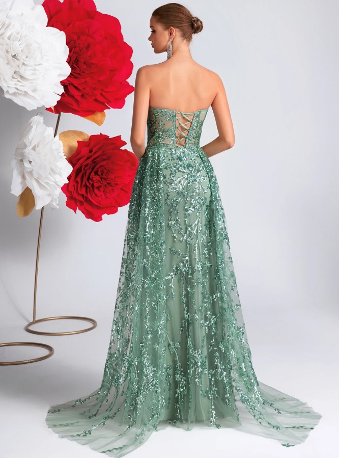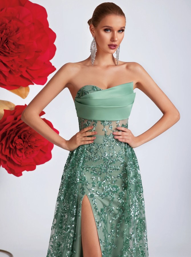 Schulterfreies A Linie High Cut Glitzer Abendkleid in Mintgrün für Hochzeitsgäste Festlich