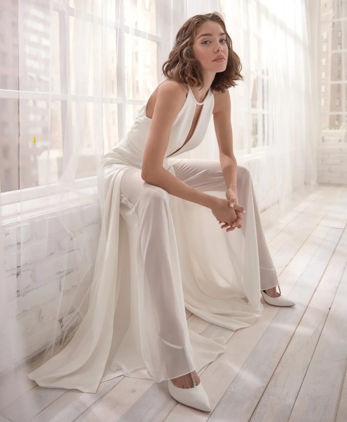 Sexy Chiffon Jumpsuit Overall Isabella for the registry office with back neckline