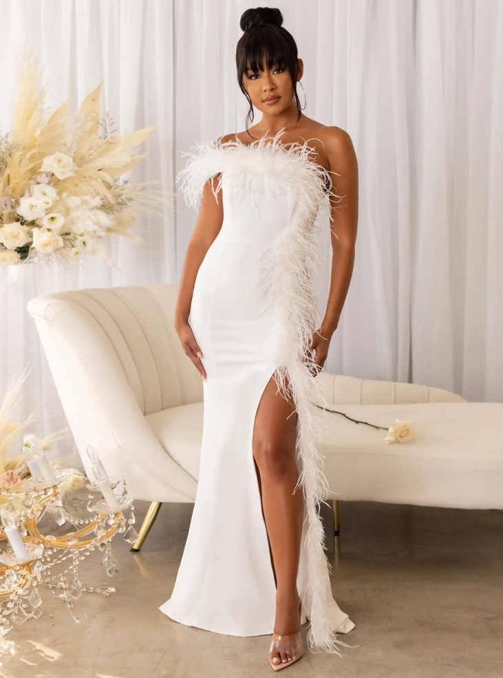 Fit and Flare Standesamtkleid Mitra für die Braut Lang mit Boa
