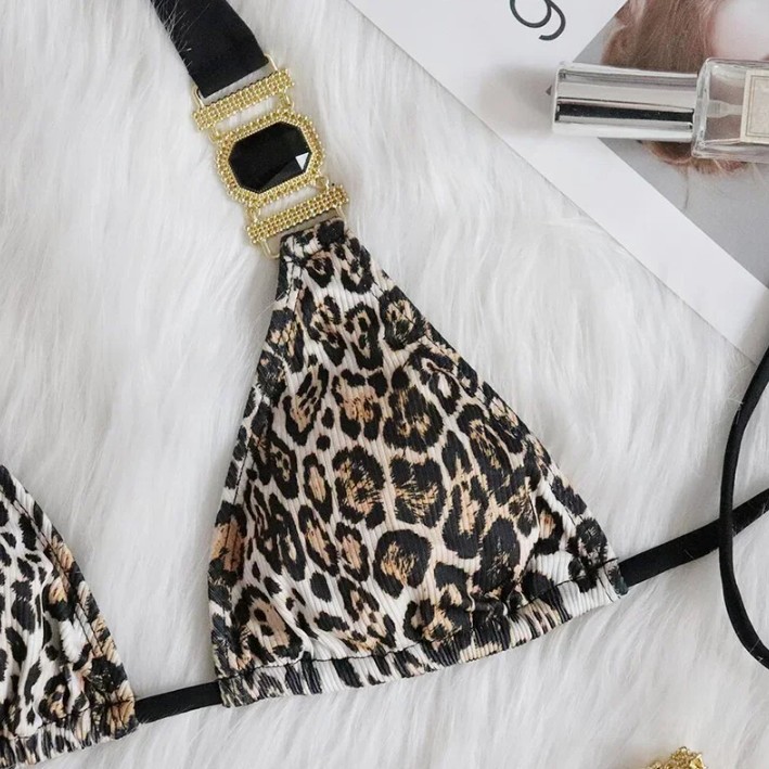 Halterneck rhinestone bikini 2025 Sidney with leopard pattern