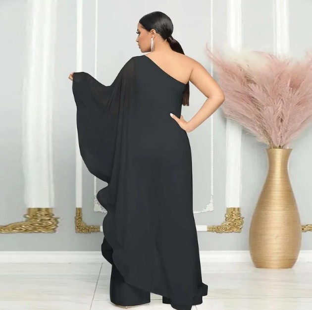A-line chiffon one-piece jumpsuit for wedding guests elegant in black