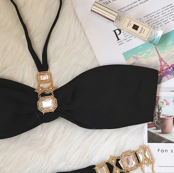 Halterneck Rhinestone Bikini 2025 Sidney in Black