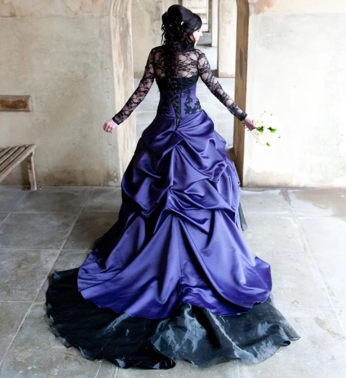 A line Gothic long sleeve wedding dress Henrikje in black blue with lace