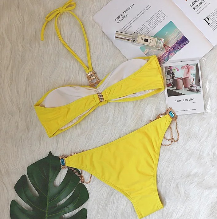 Halterneck Rhinestone Bikini 2025 Sidney in Yellow