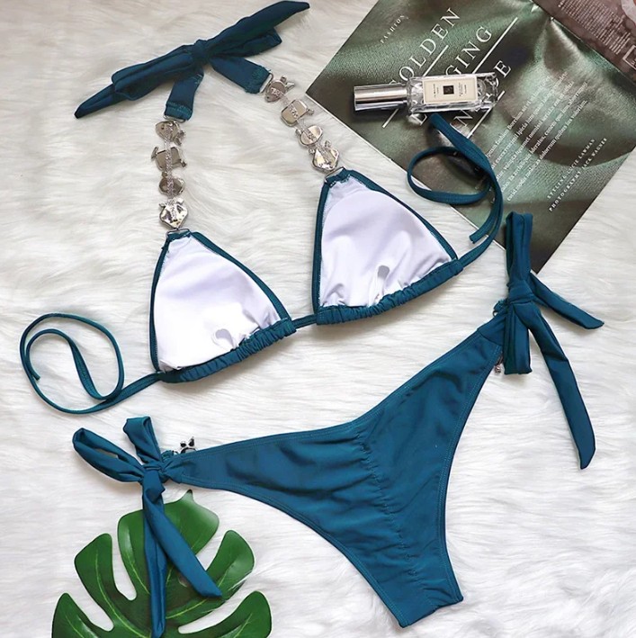 Halterneck Rhinestone Bikini 2025 Sidney in Blue