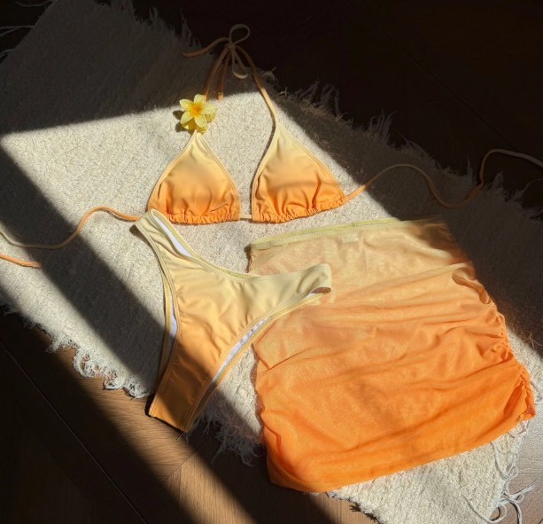 Halterneck Bikini Set 2025 Dreiteilig in Gelb mit Ombre Verlauf