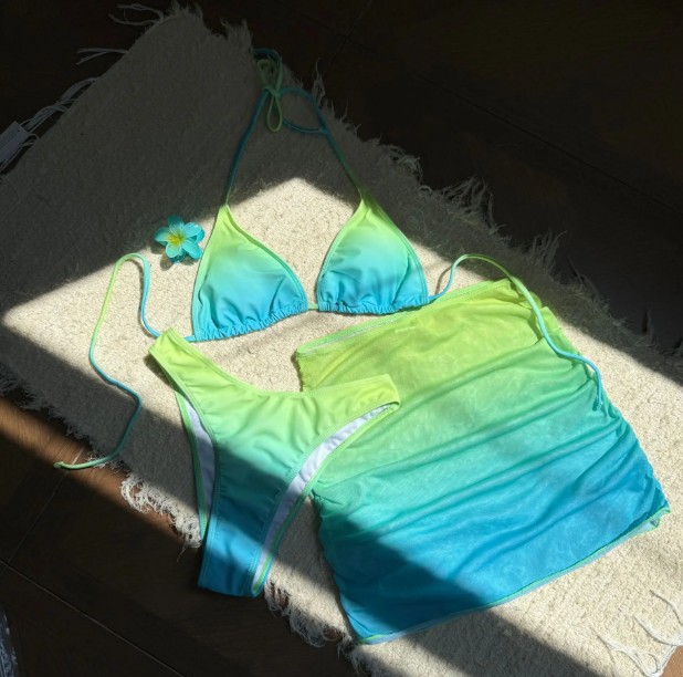 Halterneck Bikini Set 2025 Dreiteilig in Grün mit Ombre Verlauf