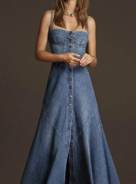 Spaghetti Strap A Line Denim Dress 2025 Long