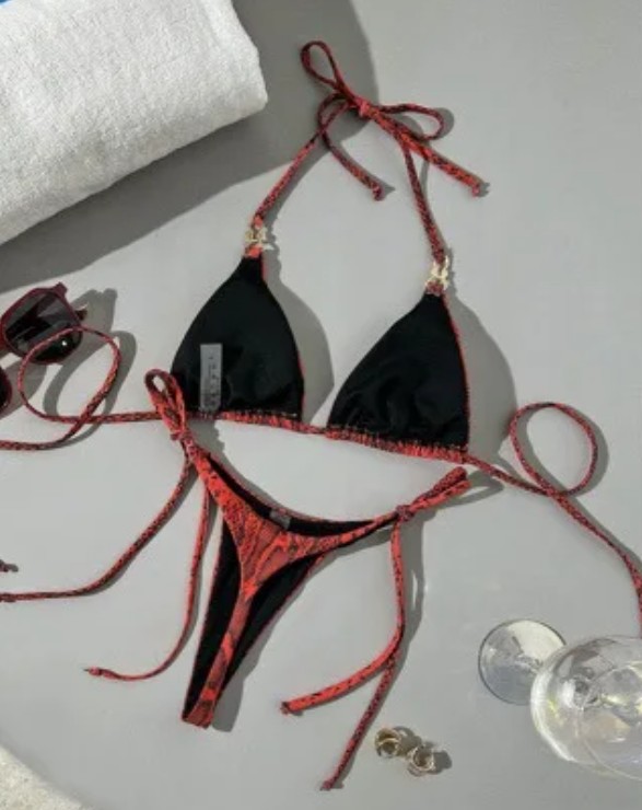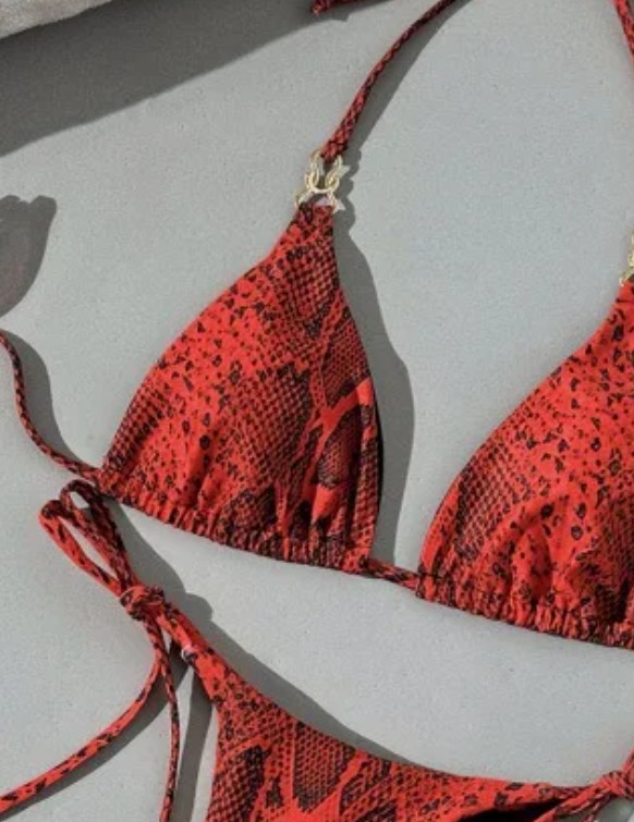 Schlangen Print Tanga Halterneck Bikini 2025 mit Hohe Taille Rot
