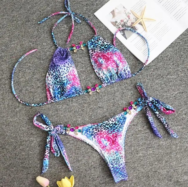 Halterneck Bikini 2025 with Leo Pattern Colorful