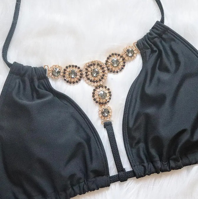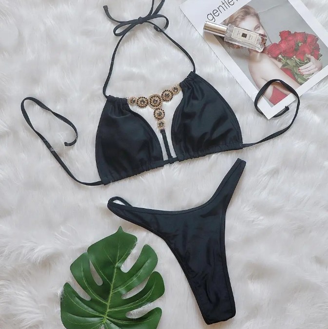 Mini Micro String Diamant Bikini 2025 Schwarz