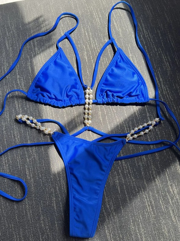 Mini Micro Thong Bikini 2025 Salome in Blue with Pearls