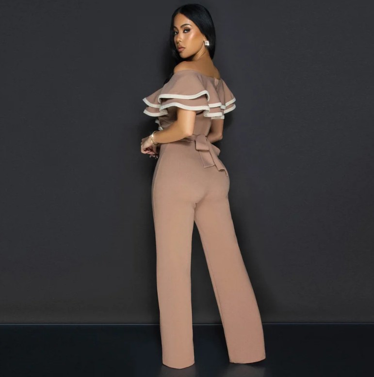 Elegant Jumpsuit 2025 One-Piece Long in Khaki with Ruffles