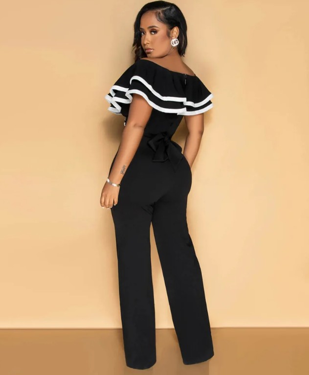 Elegant Jumpsuit 2025 One-Piece Long in Black with Ruffles