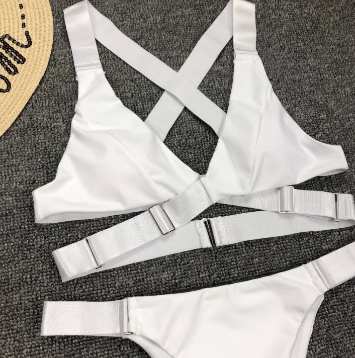 Cross-strap velvet bikini 2025 in white