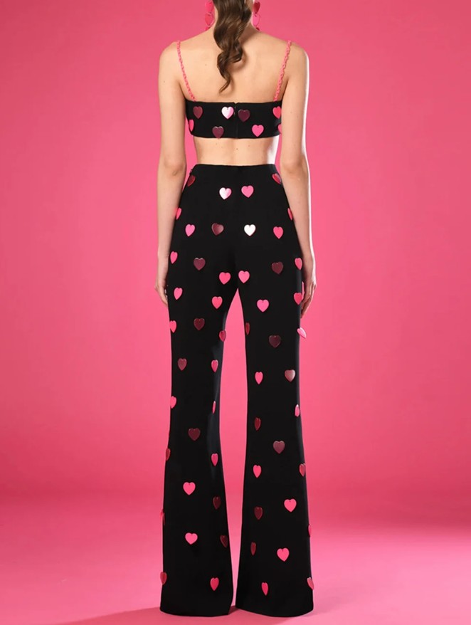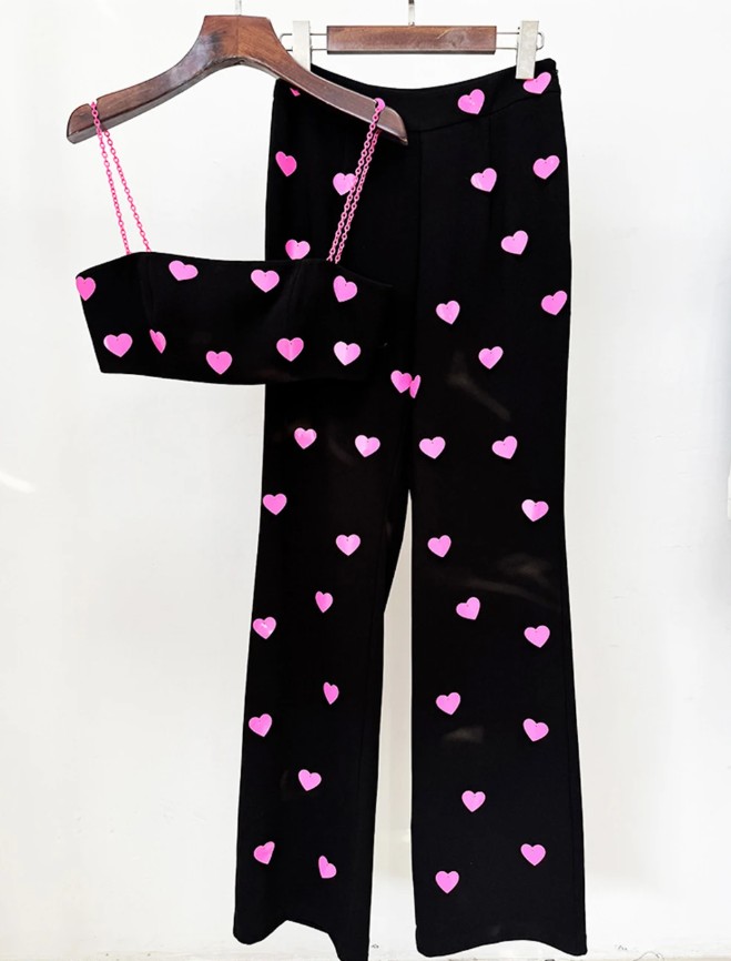 Women’s summer outfit two-piece elegant in black with hearts