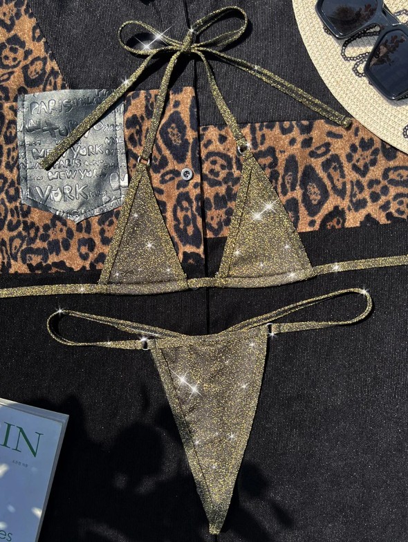 Mini Micro G String Halterneck Bikini 2025 in Gold